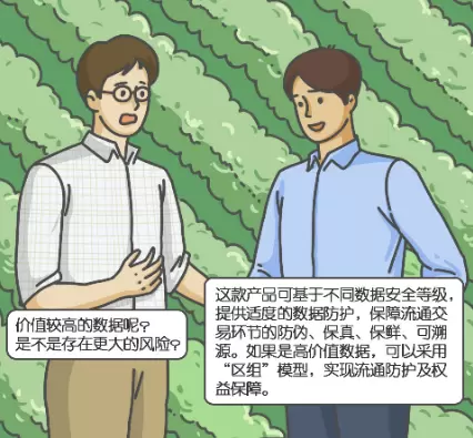 如果是价值较高的数据,信易安还可基于不同数据安全等级,提供适度的数据防护,保障流通交易环节的防伪、保真、保鲜、可溯源。如果是高价值数据,可以采用“区组”模型,实现流通防护及权益保障。