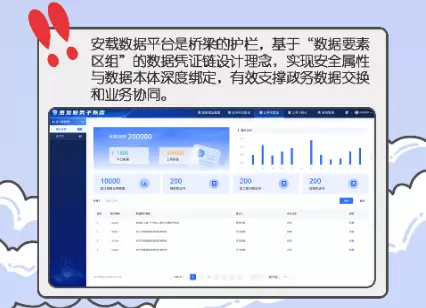 安载数据平台是桥梁的护栏,基于“数据要素区组”的数据凭证链设计理念,实现安全属性与数据本体深度绑定,有效支撑政务数据交换和业务协同。