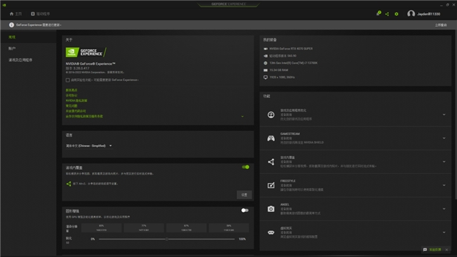 NVIDIA app的UI设计采用简洁明了的现代风格,以玩家为中心,确保了操作的直观性和易用性。清晰的图标、合理的布局以及优雅的色彩搭配,使得玩家在使用过程中能够快速找到所需功能,享受流畅的操作体验。
