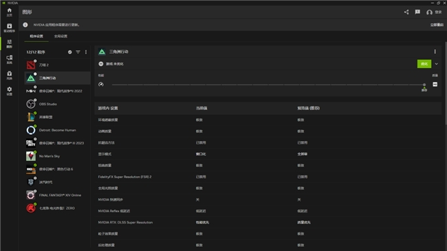 同时,一键优化设置还可开启NVIDIA DLSS和Reflex等技术,确保玩家在享受高帧数游戏体验的同时,也能获得更快的响应速度。此外,玩家还可以通过NVIDIA控制面板中的“ 管理3D 设置”功能,轻松调整各项参数,对游戏和应用进行进一步个性化配置,以满足每个人不同需求。