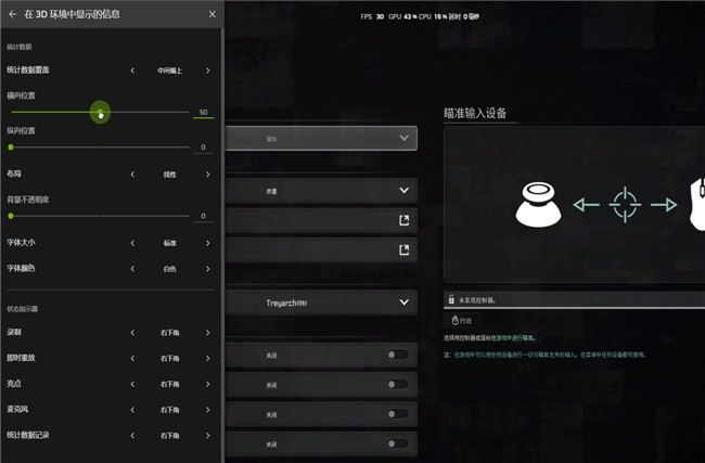 NVIDIA app全新的统计数据界面,其简洁明了设计让所有玩家能够轻松查看PC的各项性能指标及系统信息,提供了全方位的性能监控体验。游戏中,该统计数据界面直观展示了包括游戏帧数、GPU占用率、CPU占用率、延时等关键数据,让玩家在游戏过程中能够实时掌握系统运行状态,对游戏进行适当的优化设置。同时,玩家还可在NVIDIA 浮窗中对统计数据的位置、字体大小、颜色和透明度等参数进行调整,减少对游戏画面的影响,从而提升玩家在游戏中的观感体验。