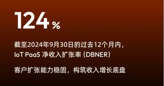 截至2024年9月30日过去12个月内,涂鸦IoT PaaS净收入扩张率(DBNER)增至124%,与2023年第三季度相比,实现了46个百分点的增长,持续保持健康水平,彰显了涂鸦不断扩大客户群对其平台的使用规模,并从现有客户群体中获得收入增长的能力。