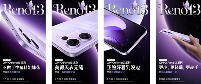 超美小直屏+蝶蝶紫配色!OPPO Reno 13系列牵手宋雨琦,11月25日发布