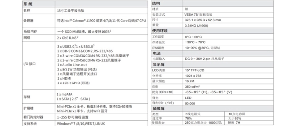 FPM-1500支持HDMI输出,最大支持2个网口、4个USB口、2路COM(485/232)口凤凰端子、1路Audio Line-Out & Mic-in和1个Remote SW。