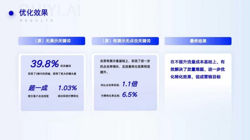 对于有展现但缺乏点击的关键词,在原有展示量基础上,点击率实现了环比1.1倍的显著增长,付费转化率达到了6.5%,流量转化效果得到明显提升,让每一次展现都更具价值,进一步夯实了营销效果。