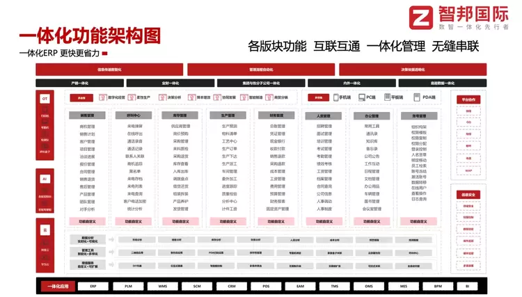 当数字时代浪潮来袭,如果不能迎头赶上,那么淘汰已是必然结局。作为ERP领域的领导品牌,智邦国际认为,只有将数字化、智能化技术与企业发展相结合,才能在赛道中抢占优势,获取时代先机。为此,智邦国际以自身首倡的“企业一体化”管理思想,结合在行业内探索20余年所累积的转型经验,针对电工电气行业匠心打造了“电工电气行业一体化ERP”产品,力推企业应用革新,凝聚企业供应链,进而打造企业智能工厂,率先实现降本增效目标。