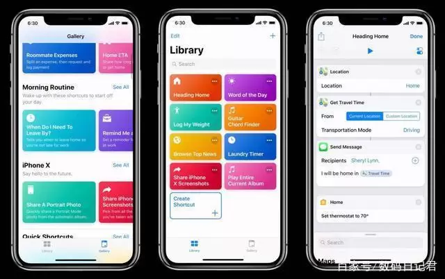 iOS 12的Siri最重要的更新就是添加了捷径。比如,我们可以创建一个捷径,使用Nest应用打开家里的恒温器,用信息应用告诉室友自己要回家了,最后打开地图应用开始导航。而这一系列操作,以后只需要对Siri说:“我要回家了”,就可以自动完成。