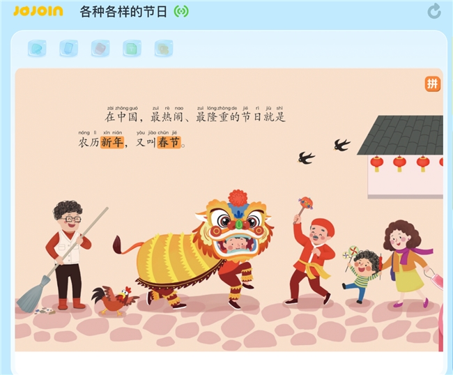 此外,在海外用户规模的不断增长的过程中,叫叫发现由于中文接触密度和文化环境上的差异,面向本土用户的内容并不能完全适合海外儿童。为此,叫叫研发团队在原创的趣味内容与科学的分级体系基础上,围绕海外语言和文化特点进行了在地化调整和研发,推出了专门为海外儿童量身定制的中文学习阅读产品JOJOIN。借由这一产品,海外儿童能在更适合自身阅读习惯的前提下,培养对中文阅读学习的长期兴趣,感受中国传统文化魅力。