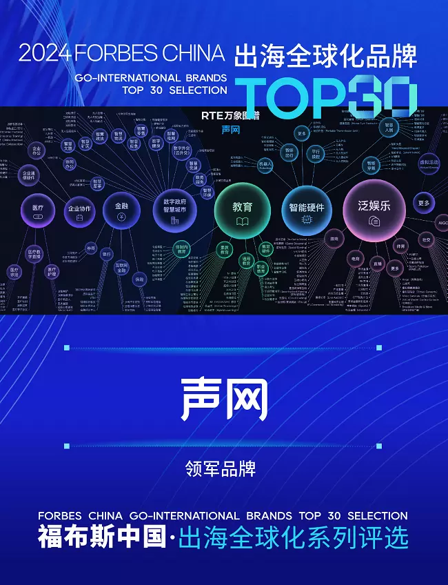 近日,福布斯中国公布了“2024福布斯中国·出海全球化30 & 30评选”榜单,声网蝉联“出海全球化领军品牌TOP30”。
