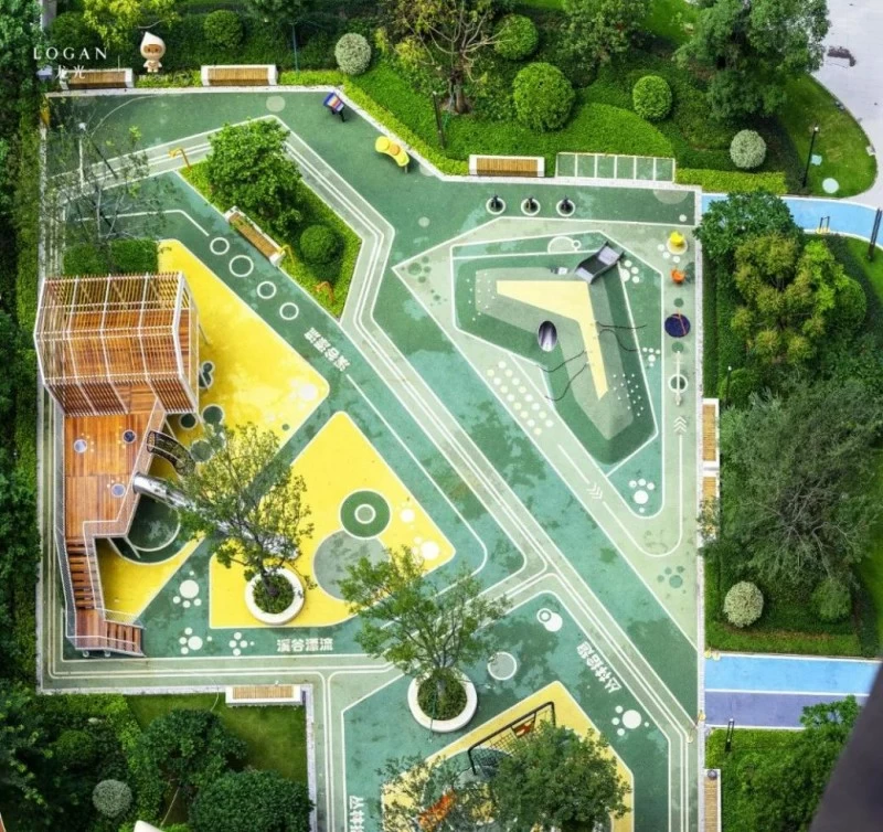 龙光地产在社区空间功能和设施配套层面,全龄段的艺术空间增添了园区的可玩性强,人性化分区的休闲区域,并设置了半岛客厅、轻氧森林、儿童活动区、健康环形跑道等功能区域。融合功能性与参与性后,艺术赋予了空间更多的生命力。