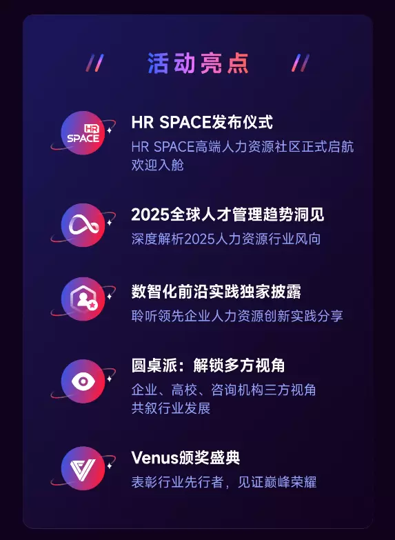 为此,2024HR数智嘉年华暨中国人力资源Venus颁奖盛典重磅启动!本次盛会汇聚了众多人力资源领域的专家学者、企业领袖与业界精英,共同探讨人才管理的最新趋势与变革方向。在这里,您将深入了解人力资源技术的最新进展,分享全球化人才策略的成功案例,探索未来人力资源管理的无限可能。让我们携手共进,共同迎接人力资源领域的崭新篇章!