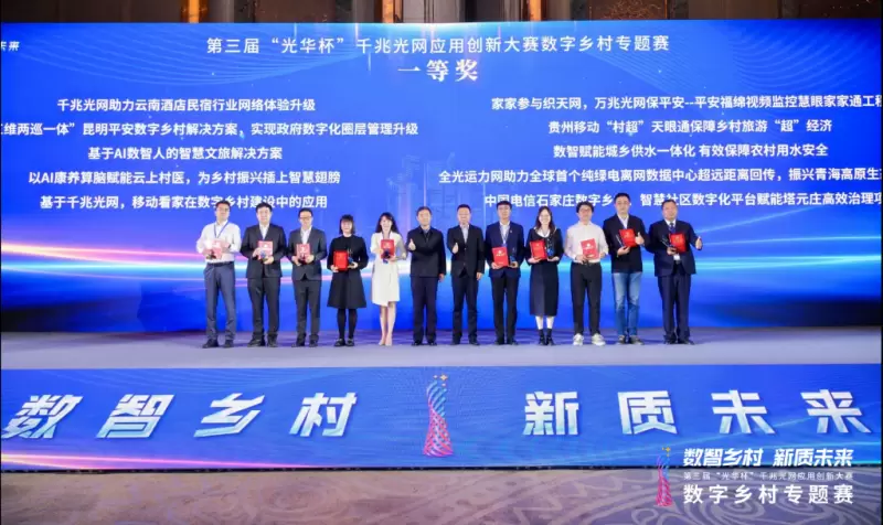 2024年11月21日,由中国信息通信研究院、中国通信企业协会、中国移动通信集团有限公司联合主办,中国移动通信集团云南有限公司承办的第三届“光华杯”千兆光网应用创新大赛数字乡村专题赛决赛及颁奖仪式在云南省昆明市圆满举行。