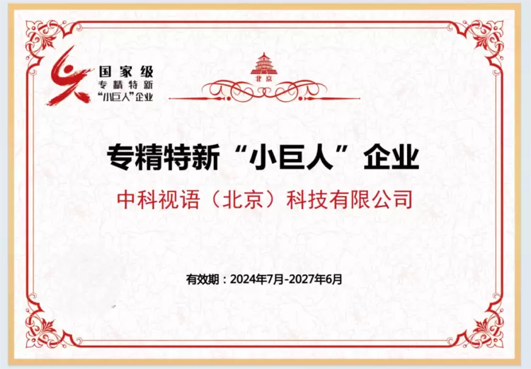 - 中科视语荣获国家级专精特新“小巨人”企业称号