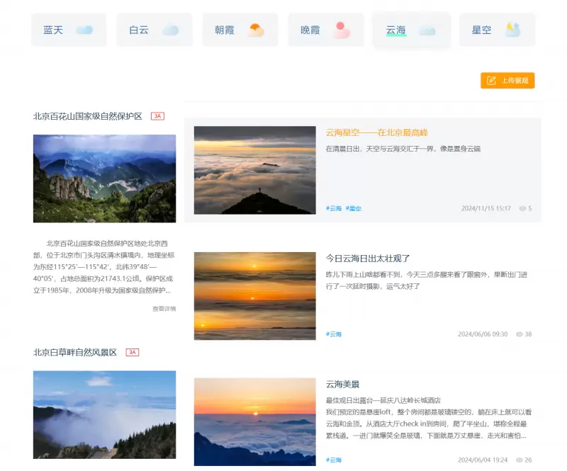 “气象景观数字化服务平台“和“漫步北京“小程序两个平台都特别注重与用户的在线互动。用户可以通过参与互动讨论,分享自己的旅游心得和观赏体验。这种互动分享的方式,不仅丰富了游客的旅游体验,还促进了游客之间的交流和互动