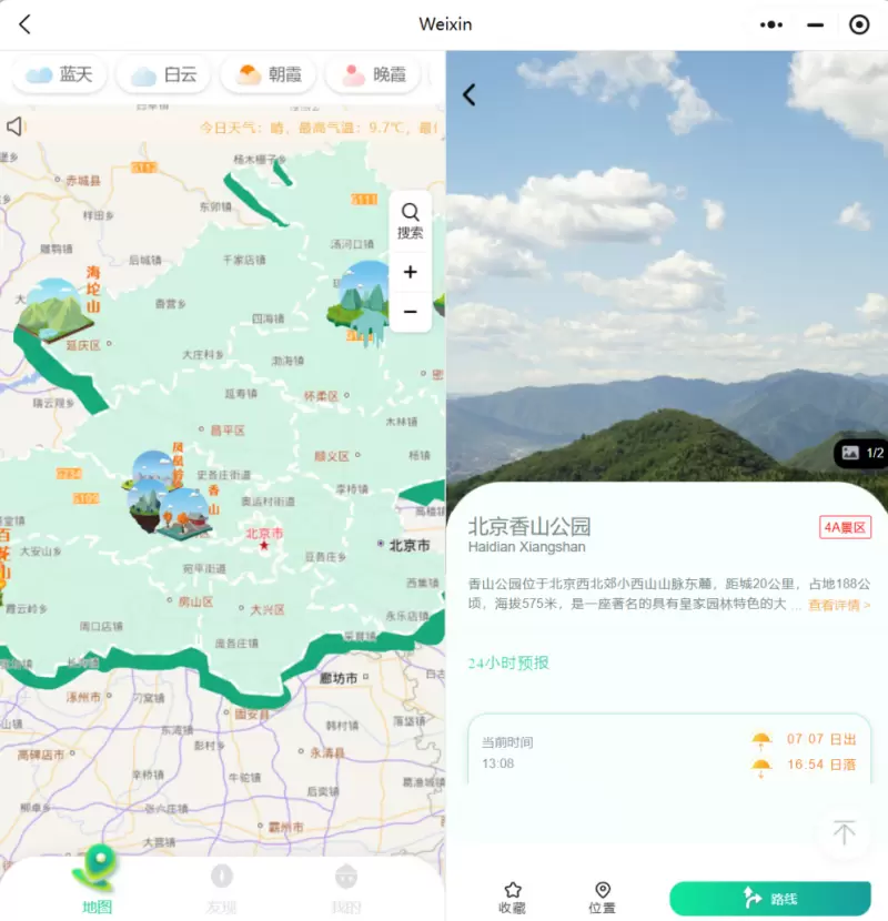 通过精准预报、电子地图、互动分享等方式,“气象景观数字化服务平台”和“漫步北京”小程序不仅提高了游客的出行效率和旅游体验,还促进了旅游产业的创新发展和可持续发展。未来,随着技术的不断进步和应用的不断深化,两个平台将继续赋能文旅产业,引领旅游业发展潮流,为游客带来更加便捷、个性化的服务体验。
