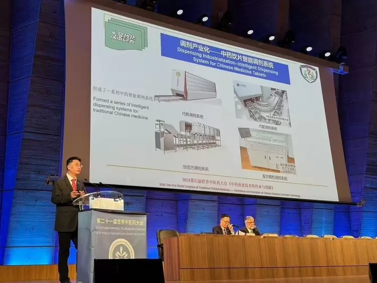 除开幕式外,此次大会设有4个综合会场和13个学术分会场。在中药调剂传承和创新分会场,南程作“数字赋能助推中药饮片调剂行业高质量发展”专题报告,对中药调剂的发展背景、发展现状进行详细分析,同时对比国际中药调剂的发展趋势,对未来中药调剂的发展趋势进行预测。搭建全流程药事服务管理已成为中医药的发展趋势,南程在报告中向全世界的中医药人展示了当前中药饮片调剂产业在向数智化迈进中取得的先进成果。