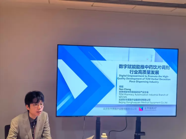 南程代表东华原在分会场作专题报告,向世界推介中药调剂先进发展成果