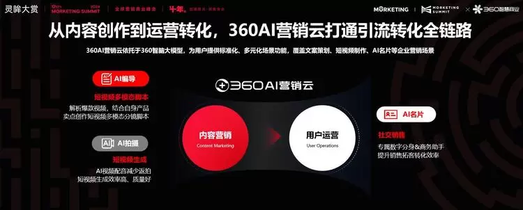 凭借AI技术的深厚积累,360智能营销云打造了“AI营销云、AI数字人、AI广告”三位一体的产品矩阵。