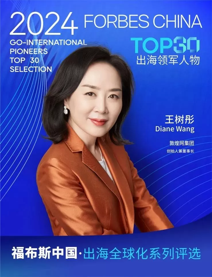 近日,全球商业权威媒体福布斯中国正式公布了2024年度“出海全球化30&30”榜单,敦煌网集团创始人兼董事长王树彤凭借其卓越的全球数字贸易领导力和对女性创业者赋能的杰出贡献,成功入选该榜单,成为本年度备受瞩目的商业领袖之一。