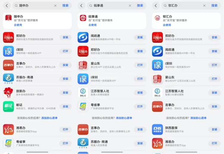 我简单看了下,一些暂时还没上架的应用,搜索时都能直接跳转到对应的支付宝小程序,不光有交管12123、易捷加油、学信网等生活服务,就连随申办、皖事通、鄂汇办等省级政务服务平台也都支持。目前,鸿蒙原生版支付宝已经上线了数百万小程序,其中包括了近30个省份的政务服务小程序。从实际体验来说,这些小程序的功能已经非常完善了,App里有的服务很多都已经具备了。想要升级HarmonyOS NEXT公测版的朋友们完全不必担心这方面的问题。