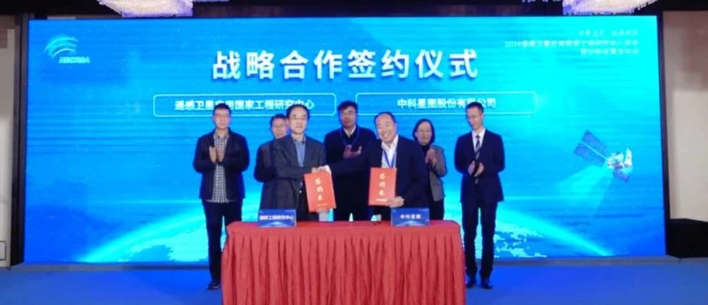 会上,张兵与中科星图股份有限公司总裁邵宗有分别代表双方签署战略合作协议。吴一戎分别为中科星图股份有限公司和世纪空间授牌,正式成为“遥感卫星应用国家工程研究中心共建单位”。
