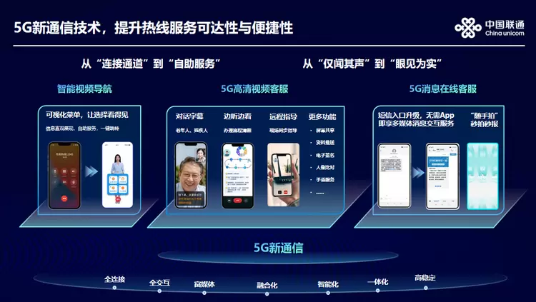 与此同时,5G消息智能客服作为5G新通信的重要组成部分,也为中国联通的政务热线增添了新的活力。具有安全可靠、用户触达率高、样式丰富、可交互性强、用户形为效果可追溯等特点。它构建了消息服务新入口,完成一站式的业务体验和人机交互,将短信互联网化,为政府打造更便捷的服务场景。用户无需下载App,即可享受多媒体消息交互服务,通过手机短信入口及时接收诉求办理进度通知和其他政策通知,同时支持“随手拍”,秒拍秒上报,用便捷的交互对话形式提升服务感知。