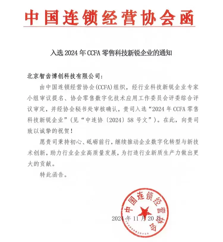 智齿科技获评“2024年CCFA零售科技新锐企业”