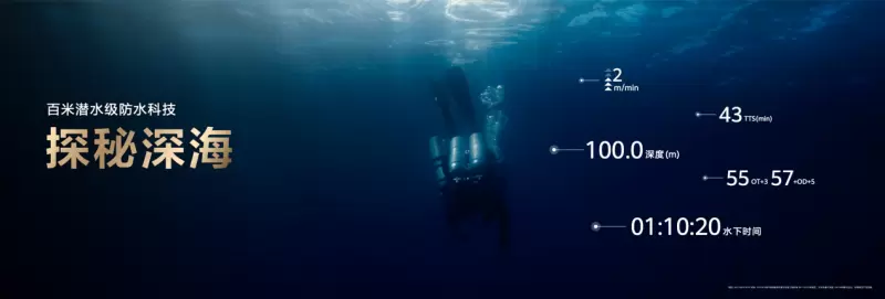 在户外环境下,HUAWEI WATCH ULTIMATE DESIGN 非凡大师也支持先进的运动健康监测技术。手表通过了潜水设备工程标准ISO 22810防水标准测试和 EN13319潜水设备标准测试,满足10 ATM防水等级,支持深达100米的自由潜、休闲水肺、技术潜水和仪表潜水等多种潜水模式。