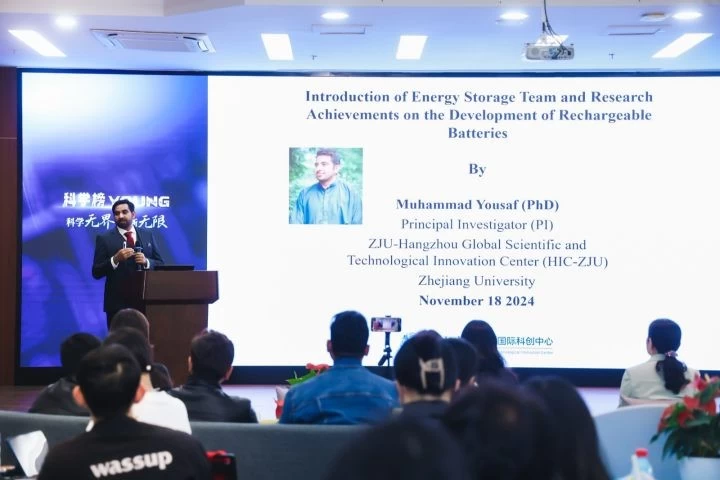 尤萨夫对杭州的第一印象是“非常绿、非常干净”,现在他已经是浙江大学杭州国际科创中心未来科学研究院先进微纳储能研究室的首席研究员。演讲台上,尤萨夫激情四溢地分享了他的研究心得:“面对储能技术的重大挑战,包括环境污染、资源枯竭等问题,我们必须加速转向可再生能源,提高能源利用效率,同时致力于碳捕获和储存技术研究。”