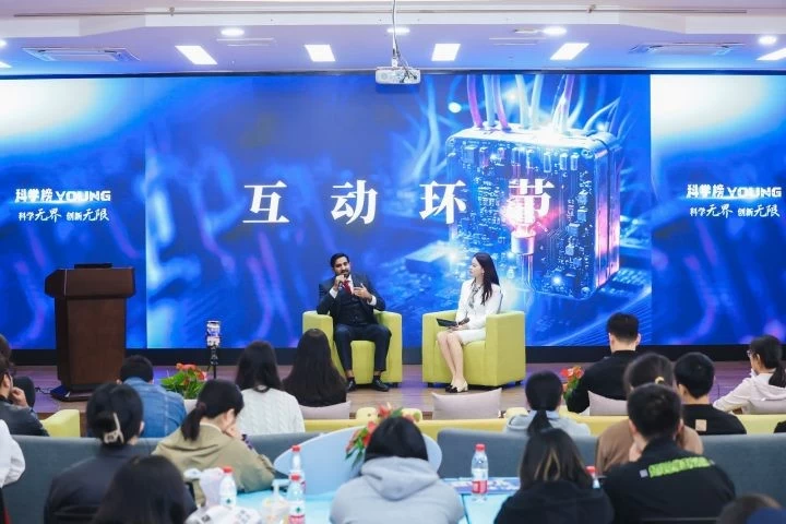 互动环节,尤萨夫与现场观众进行了热烈交流。“从小我就对科学充满好奇,这份好奇心驱使我不断探索未知。”他分享道,“科研路上难免遇到挫折,但正是这些挑战让我们更加坚强。”