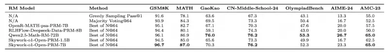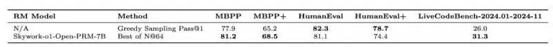除Skywork-o1-Open-PRM外,其他开源PRM均未针对代码类任务进行专门优化,故不进行代码任务的相关对比。