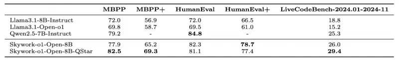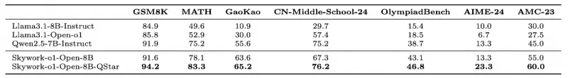 1,Skywork o1 Open:一款基于Llama 3.1 8B的开源模型,该模型在同生态位开源模型中评测指标大幅提升达到SOTA水平,并解锁了许多轻量级模型无法解决的复杂数学任务。该模型的发布也将帮助加速国内开源社区复现o1的进程。