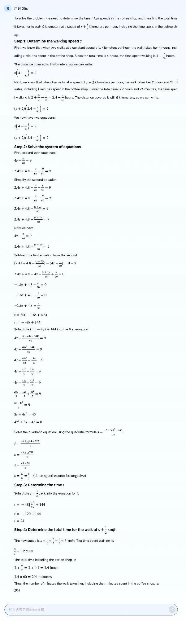 面对难度不小的最新考研数学题,Skywork o1 Preview尽管花费了一些时间,但还是一步步推理出了正确结果。