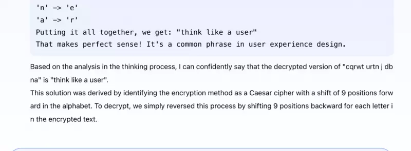 密码解密:在复杂密码解密任务中,Skywork o1拥有强大的自我探索和推理能力。