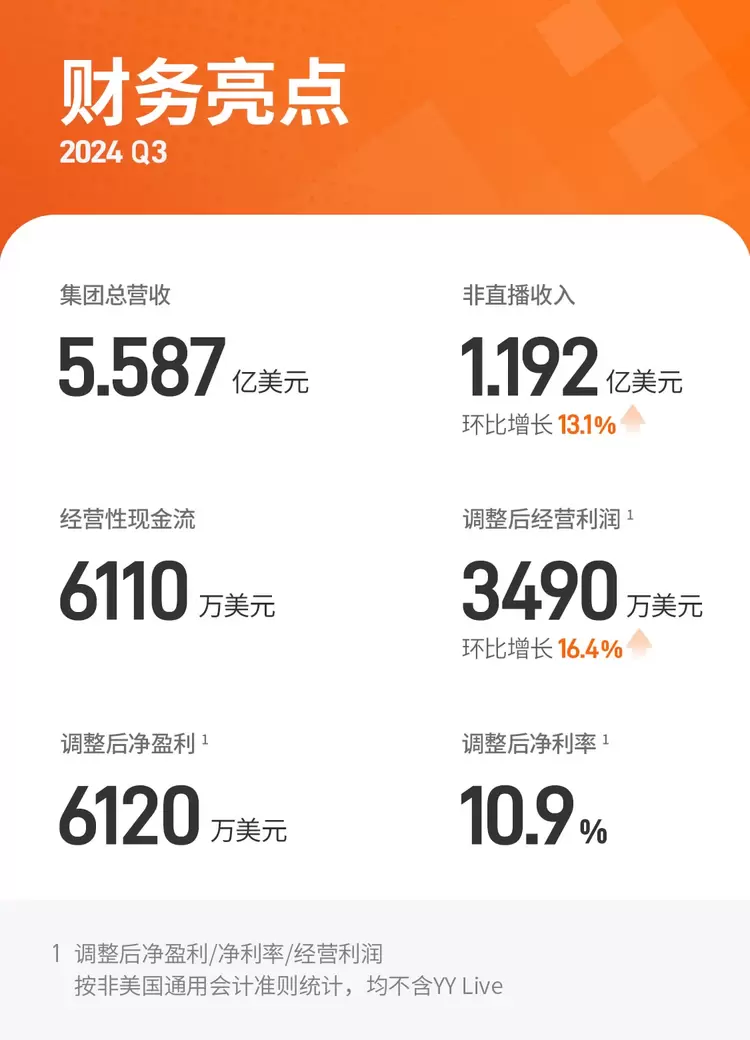 欢聚集团2024年Q3经营利润环比增长16.4%,精细化运营驱动盈利提升
