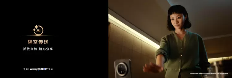 (1)HarmonyOS NEXT AI隔空传送功能,基于“AI隔空操控”功能全面升级。当用户面向一台华为终端设备进行抓住动作,抓取单张照片或者界面截图,保持握拳的手势移至另一台受信任设备屏幕前,松开手,就能实现图片的跨设备投送。