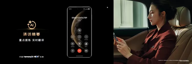 (2)得益于鸿蒙AI的深度赋能,HUAWEI Mate70系列还可支持AI通话摘要、AI通话翻译等便捷功能。当用户在日常接打重要电话场景中,通话后AI功能可自动生成文本摘要,用户可轻松查看历史记录与核心内容;同时通过AI通话翻译功能,借助小艺帮忙接打电话还可完成语音文本实时互转和实时翻译,不惧跨语种交流,助力工作效率显著提升。