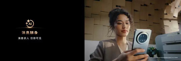 华为Mate系列AI信息保护功能再一次升级,AI消息随身上线。当用户接收信息时,若设备识别到陌生面孔或者有多张面孔同时注视屏幕,消息内容即刻自动隐藏,同时将隐藏的信息即时推送至用户配对手表上,保护隐私的同时,不错过任何重要通知。
