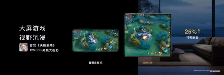 除了大尺寸带来更好的显示效果这一天然优势外,华为在折叠屏软件生态的逐步完善也让HUAWEIMate X6在交互体验上与同类竞品拉开较大差距。截至目前,多家头部APP已完成HUAWEI Mate X6大屏的适配,其中首发游戏《决胜巅峰》已做到120FPS高帧大视野,可视画面相较于直板机直线提升25%,双方对线提前观察敌方动态,让玩家在游戏过程中真正掌握主动权。