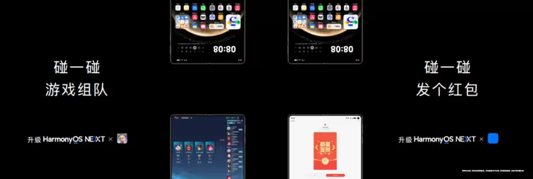 “华为分享”功能作为一种便捷的文件传输方式,可在设备间快速共享图片、视频、文档、名片等文件,HarmonyOS NEXT新推出的碰一碰功能,两台设备靠近碰一碰,就能实现快速分享,同时华为也将碰一碰的能力开放给了生态伙伴,无论是游戏组队还是支付宝发个红包,曾经复杂的操作现在只需碰一碰即可实现。