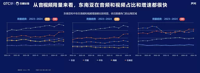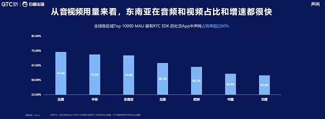 在当今全球化浪潮下,出海成为众多企业寻求发展的热门选择。社交娱乐作为人类的基本诉求,在应用市场占据着大量用户时长,泛娱乐+互动更是出海的首选方向,其占比逐年递增。声网音频娱乐产品负责人杨帆介绍,在实时互动出海领域,如语聊房、游戏等场景有着多样的选择机会。音频出海中东是首选,视频则倾向于东南亚和南美,那里年轻人居多,更乐于开启摄像头社交。从各地区增长数据来看,中东和东南亚在音频与视频用量方面增长态势良好且持续上扬。