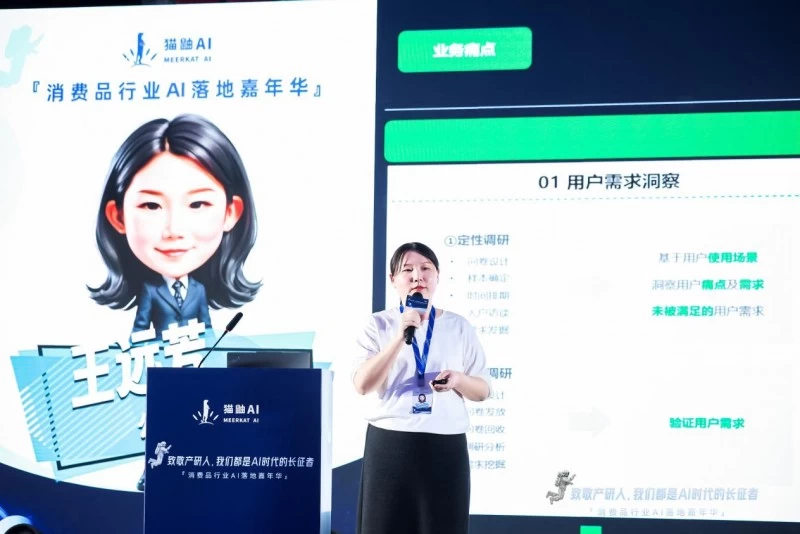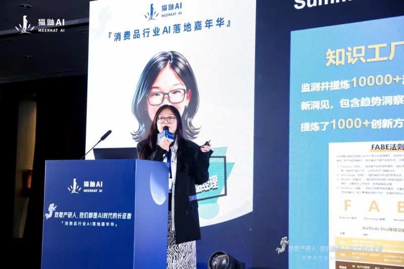 罗佳先生给到消费品企业AI的钥匙后,猫鼬AI高级产品经理谢柔静女士则基于她100+产品创新项目的经验和近20个数字人的开发经验,向现场观众从更加落地的层面,直接给到解决问题的工具,激发了在场企业家们的浓厚兴趣。