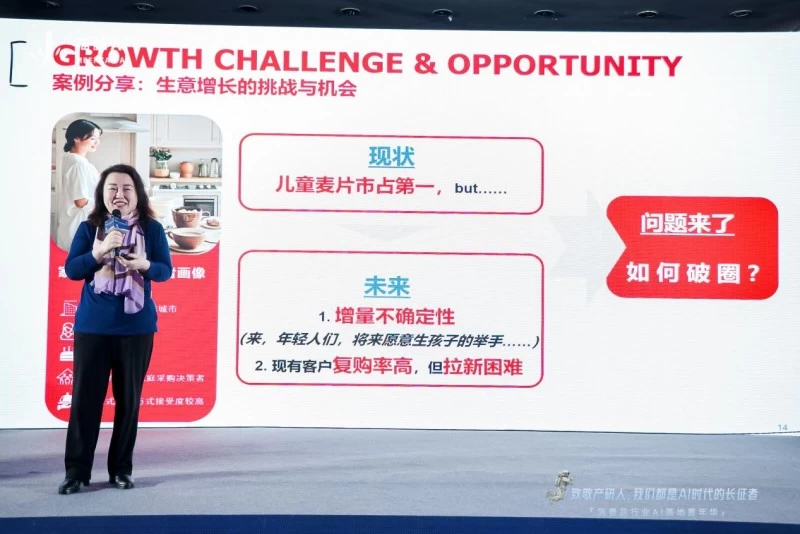 在上午的压轴环节,益海嘉里家乐氏食品有限公司总经理吴涛女士带着家乐氏最近通过猫鼬AI实现快速落地的新品,巴西莓针叶樱桃烘焙麦片,分享了她眼中AI在食品行业的应用探索与思考。吴涛女士以家乐氏的AI落地新品为例,向在场与会者强调了AI在提高效率、降低成本、提升产品质量方面的潜力,并鼓励企业拥抱创新,及时采取行动,及早享受AI带来的创新成果。