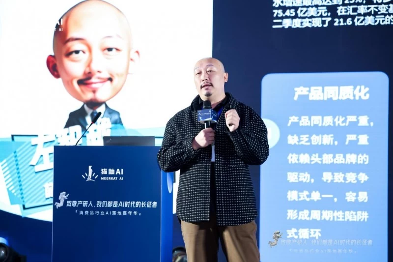 在接下来的环节,猫鼬AI创始人罗佳先生大胆指出当前消费品行业现存的挑战,并将其总结为“消费品公司的100种死法”,罗佳先生也基于其在消费品产品创新行业的16年方法论经验,用AI作为钥匙,为当下的消费品企业给到了解决问题的钥匙。到底是“用AI十倍速抄袭”还是“用AI保证原创”,这是当下处于“红海”甚至“死海”的消费品企业必须面临的抉择。