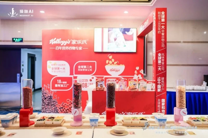 在本次嘉年华中,猫鼬AI的许多好朋友也在现场进行了自己的产品展示,包括家乐氏、简爱和帝亚。其中,家乐氏和简爱在猫鼬AI的撮合下,共同举办了一场DIY酸奶碗的联名活动,数百位与会者在品尝来自家乐氏和简爱的新品谷物和酸奶,活动现场人头攒动,产品供不应求。