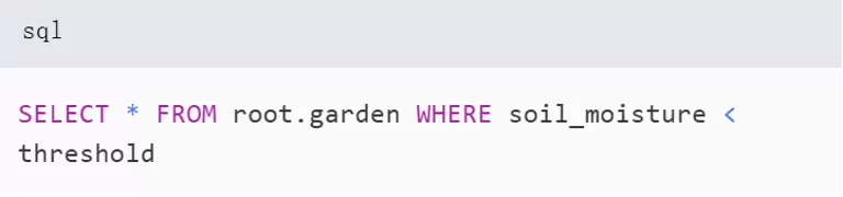 以下查询语句可以获取土壤湿度低于设定阈值的监测点数据: