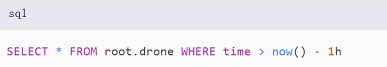 以下查询语句可以获取过去一小时内无人机采集的所有数据: