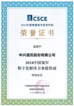 中兴通讯荣获“2024中国领军数字化解决方案提供商”大奖
