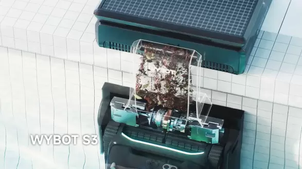 同时,S3几乎完全解放了用户的双手。它具备自动清理集尘盒的功能,清洁结束后会将垃圾转移到岸边的集尘箱,免去了用户每次手动清洁的烦恼。此外,S3还配备了自主回桩功能和太阳能充电系统。在完成清洁任务后,机器人会自动返回充电桩充电,太阳能充电系统则确保其能够实现长时间的自主作业。得益于这一创新,S3可以实现长达一个月的免干预工作周期,持续保持泳池的清洁。