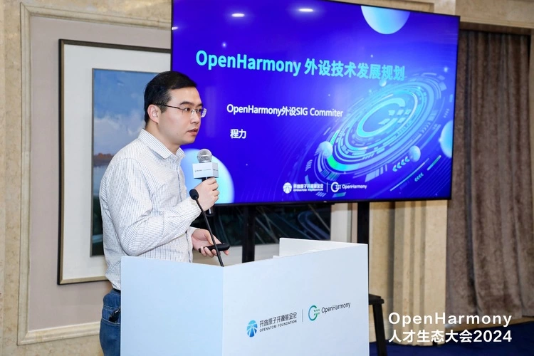 OpenHarmony外设SIG Commiter程力分享了OpenHarmony外设技术发展规划,外设接入的架构方案、外设驱动技术规划方向和DDK能力及外设生态成果。他表示将依托OpenHarmony平台,构建各品类外设驱动扩展框架,完成外设的OpenHarmony系统平台能力构建,支持伙伴高效、安全、低成本接入外设生态,快速繁荣外设生态。